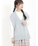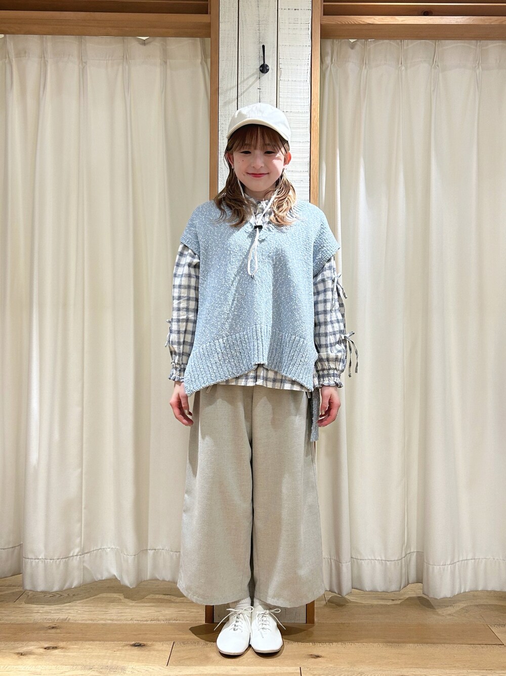 とても爽やかな印象になるベストです✩*。 生地はニットですが、軽く涼しく着ていただけます𓈒◌ パンツは丈は後ろゴムで履きやすいです𖥧𖤣