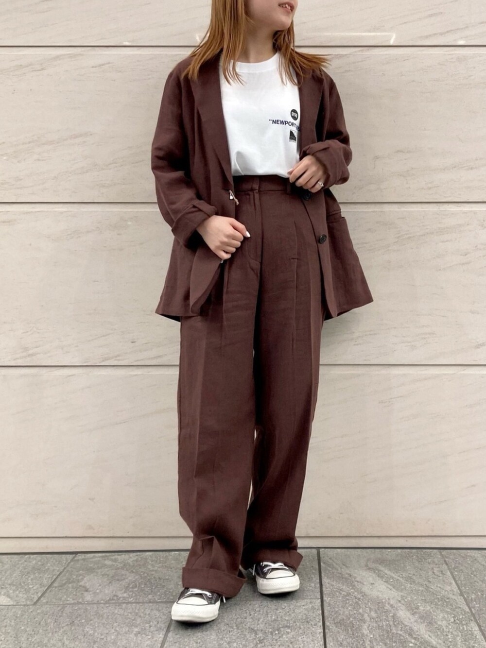 アコのその他パンツ「『セットアップ対応』 リネンセミワイドパンツ」を使ったコーディネート