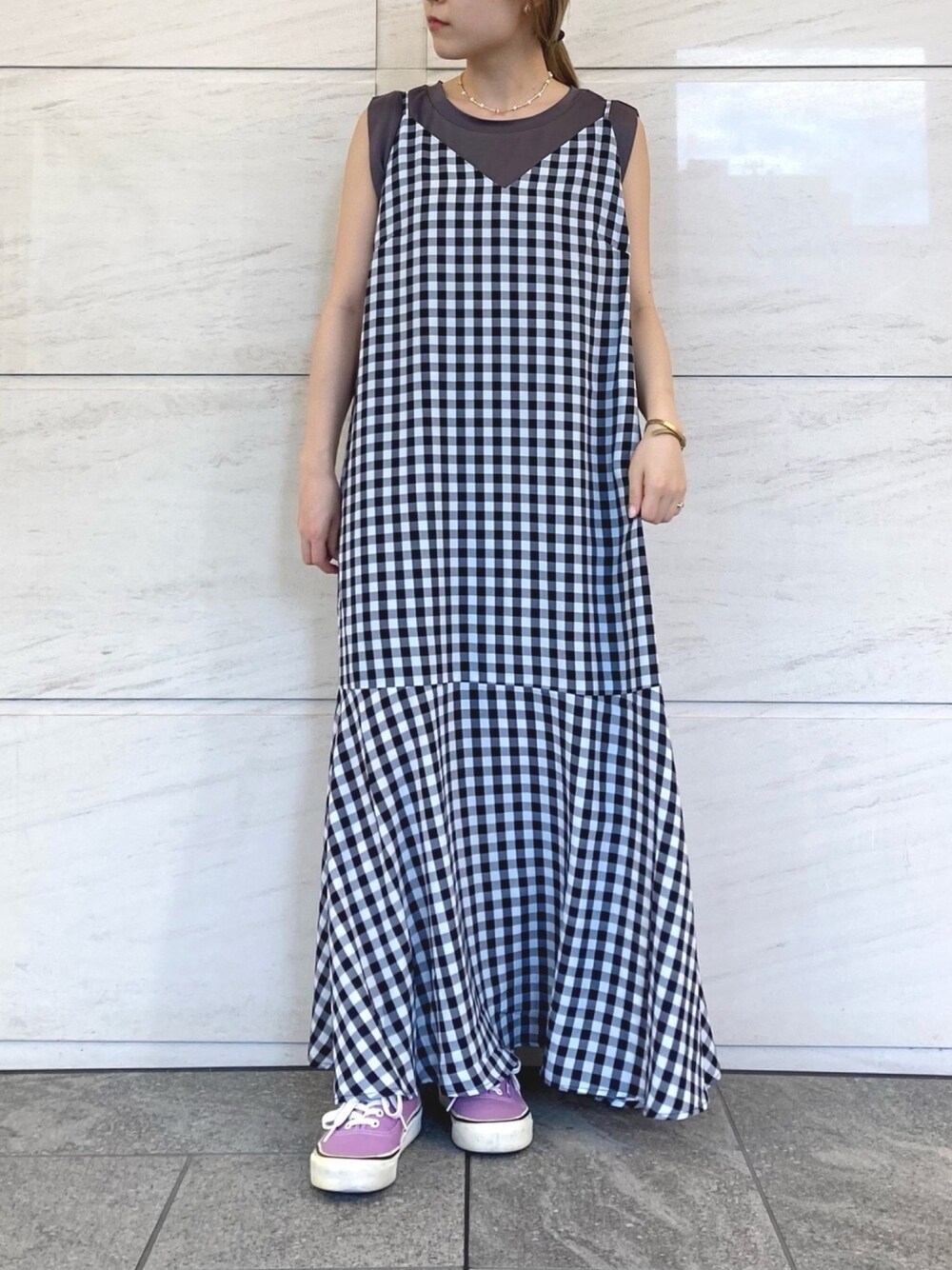 カタチがキレイなキャミワンピは 一枚あるとかなり使えます😇 特に紐で長さが調節できる点も ありがたいポイントですね☺️