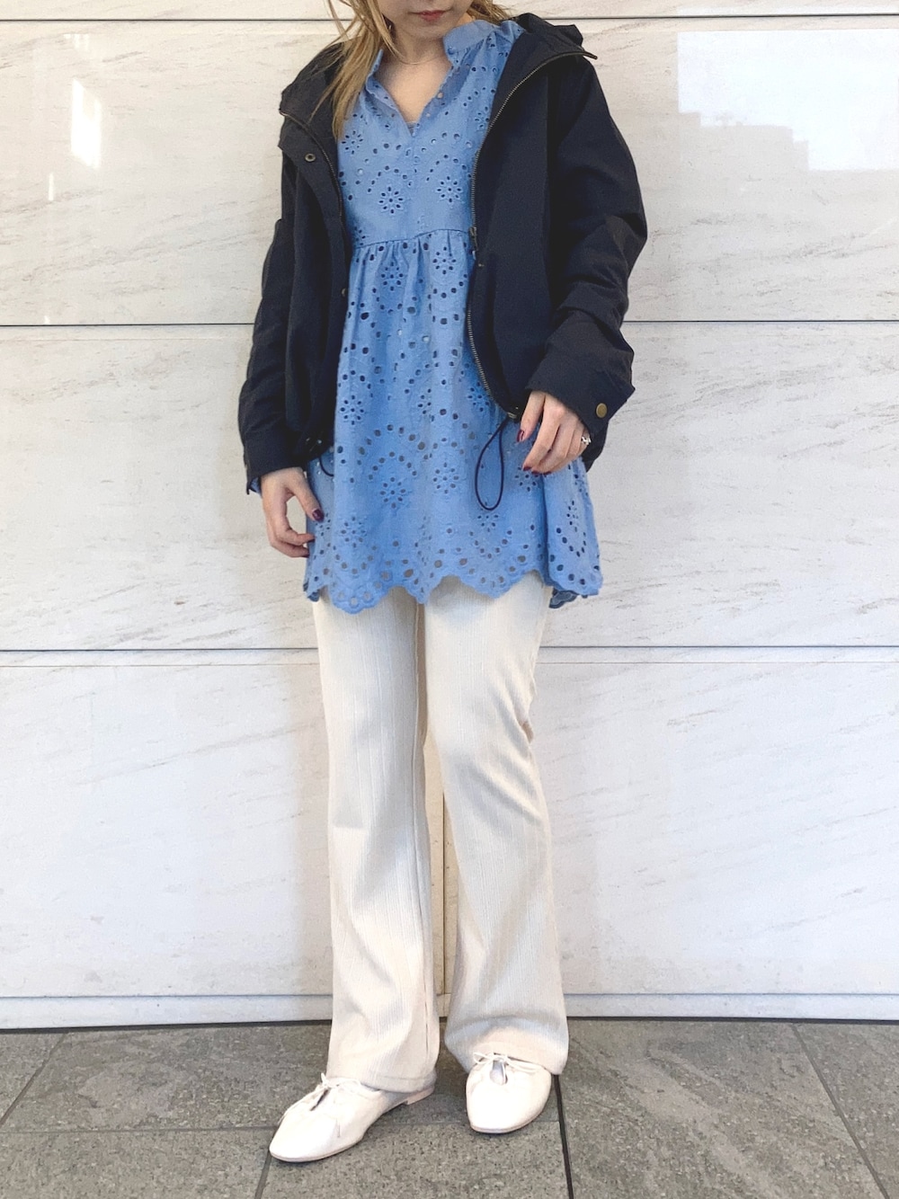 ついにマウンテンパーカー 店頭にも入荷です。 2WAYで着用可能なブラウスは 体型カバーもできる丈感が◎