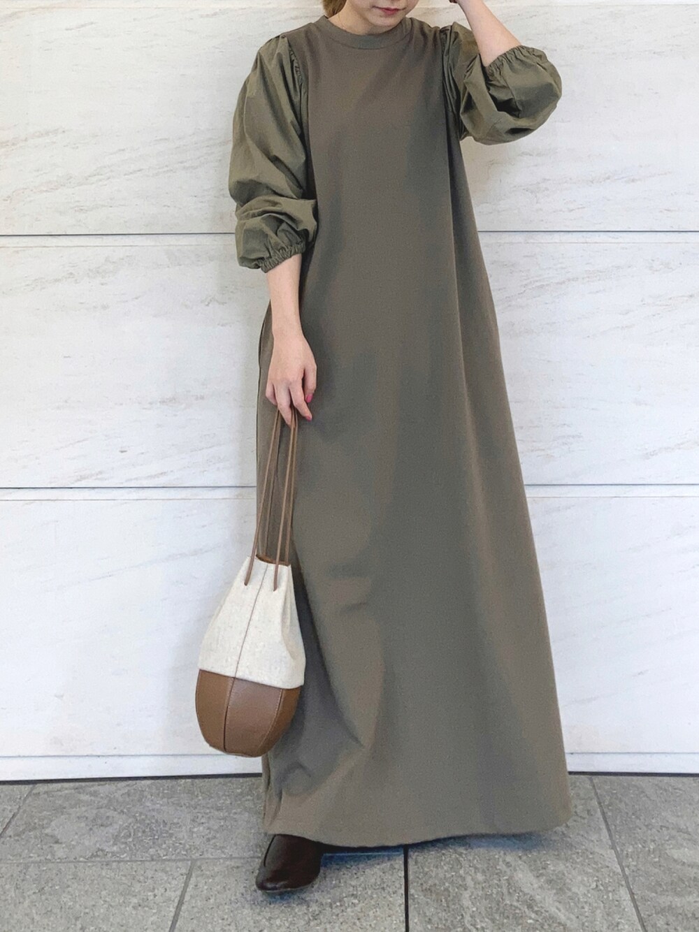 アコのワンピース「ボリュームスリーブカットワンピース」を使ったコーディネート