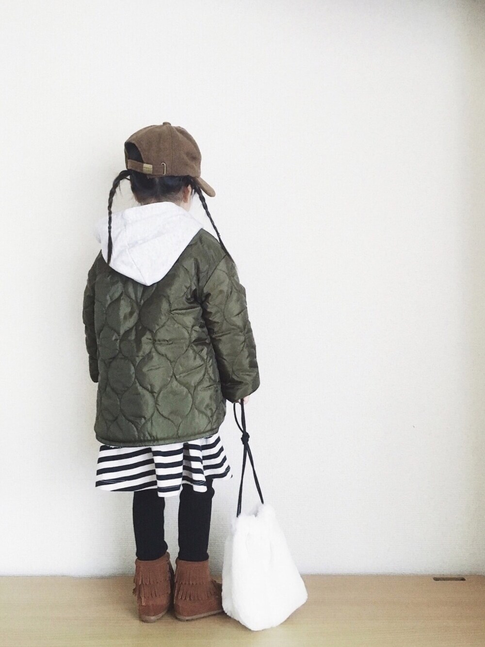 accaのワンピース「オーガニックボーダー長袖ワンピース(KIDS)」を使ったコーディネート