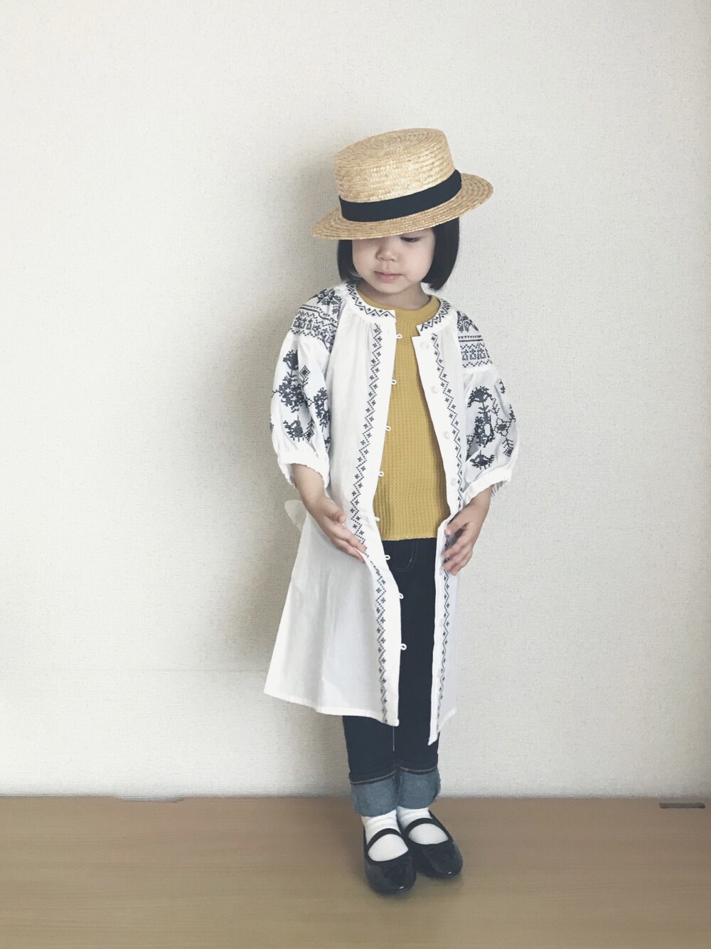 accaのワンピース「刺繍シャツワンピース」を使ったコーディネート