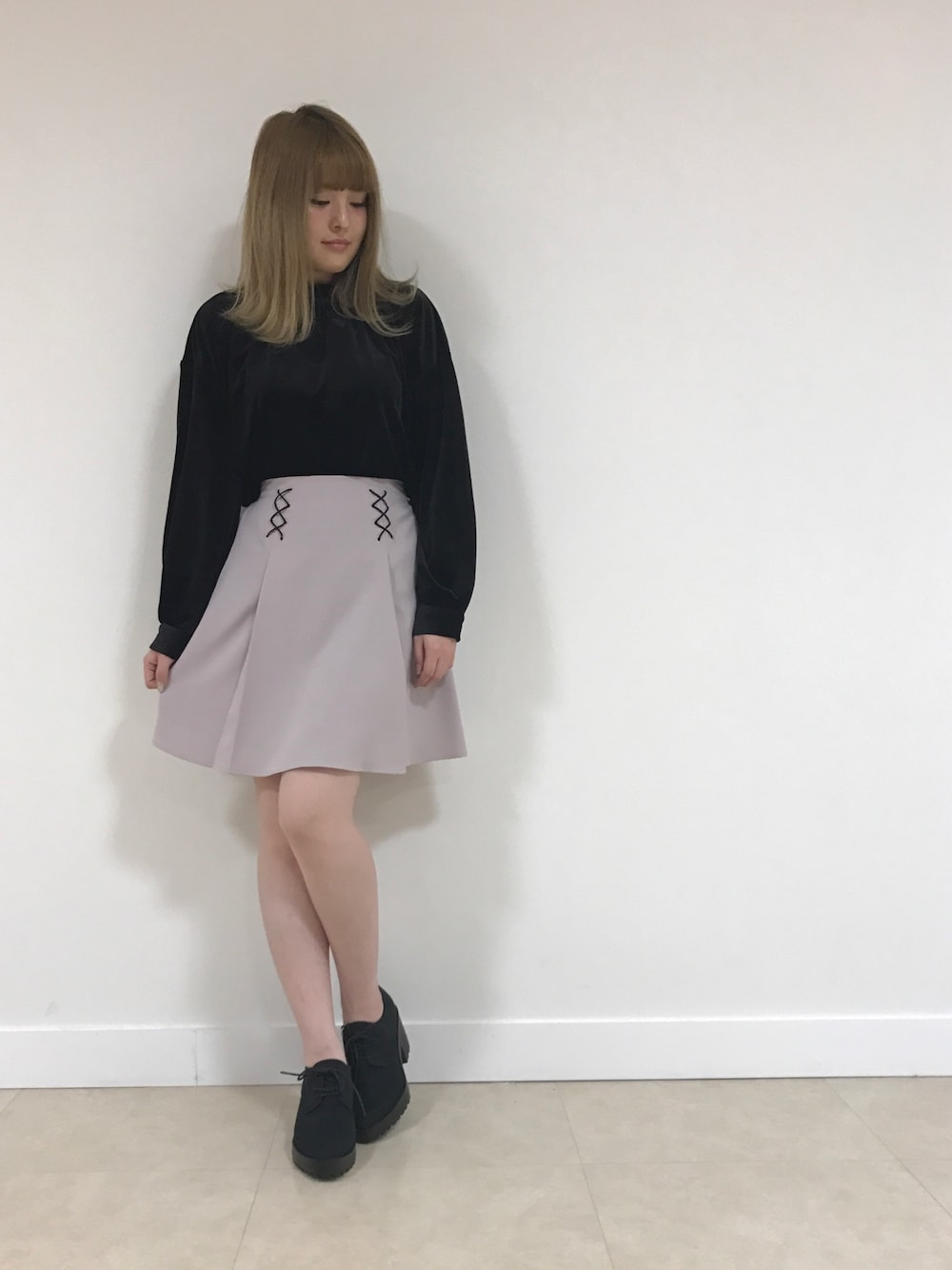 あっちゃんのTシャツ/カットソー「ギャザーハイネックベロアプルオーバー」を使ったコーディネート