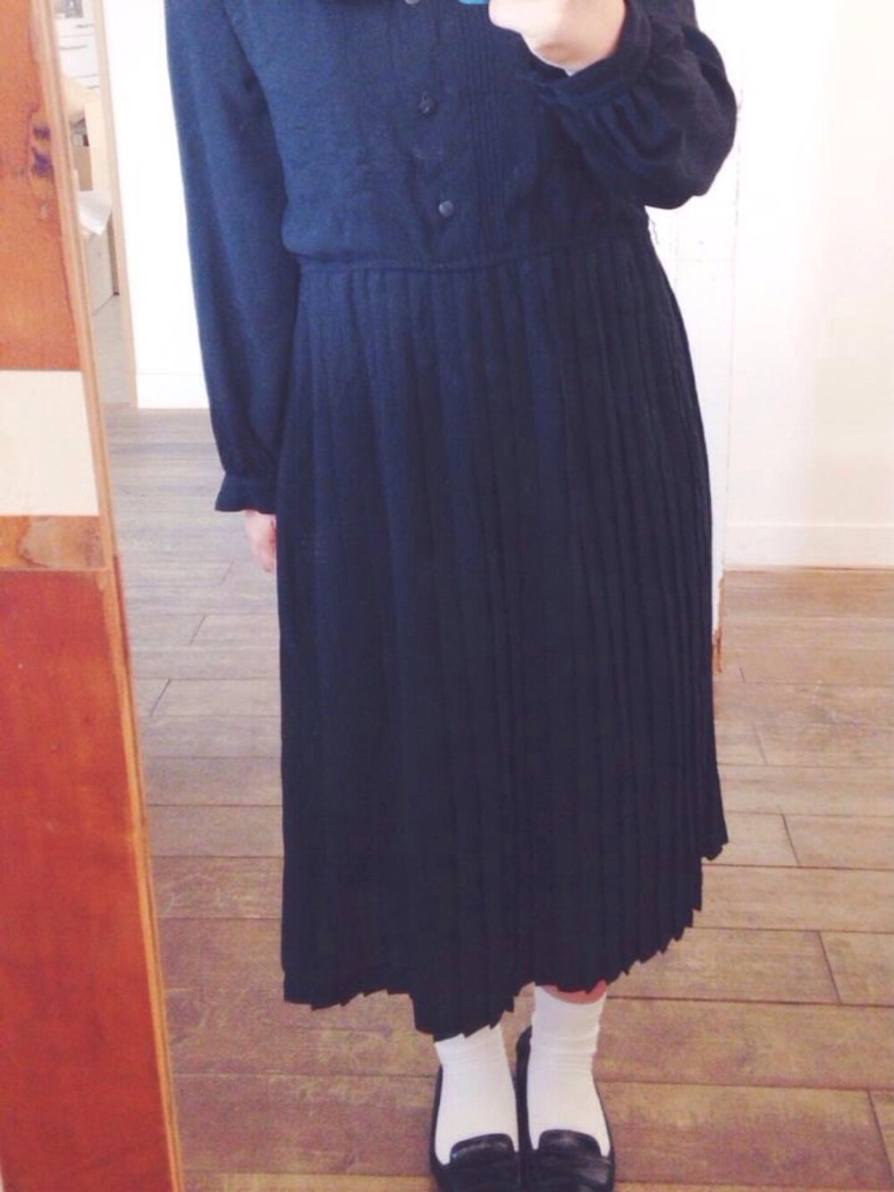 全部リセットしました🌞 古着屋で買ったワンピースに 白ソックスに ローファー風のシューズです✌︎ いつかのバイト着〜〜