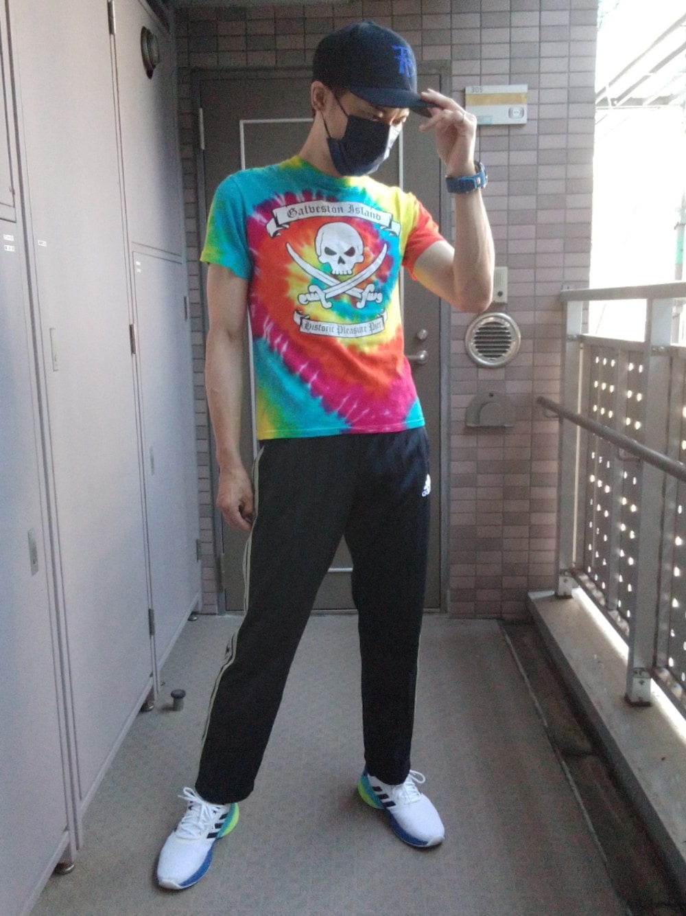 こんにちは、エースです。 ご覧いただき、ありがとうございます。 また、いつも沢山のフォロー、いいね!、お気に入り登録にも感謝御礼です。 投稿No.41 タイダイ柄コーデ バリバリな配色のTシャツを主役に、後はシンプル・夏仕様で組んでみました。 ちなみにTシャツは、海外古着です。なかなかセンス効いてるな~と思ったので、コーデにつかってみました。インパクトも十分ですよね。 夏ならではの配色、いかがでしょうか。 またよろしくお願いします!