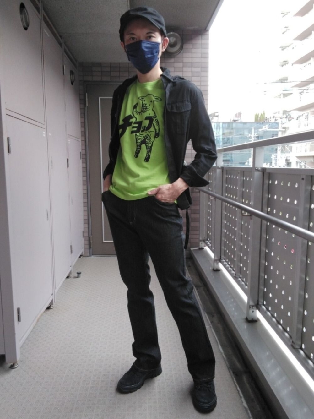 こんにちは、エースです。 ご覧いただき、ありがとうございます。 また、いつも沢山のフォロー/いいね!/お気に入り登録にも感謝御礼です。 投稿No.76 グリーンコーデ グリーンカラーでモノトーンにインパクトを出したコーデになります。 Tシャツは、驚くほど様々なデザインを出している、大好きなgraniphのネタTを採用しました。グリーンの色味が良く出ているんですよね。 あと、プリントのイラストは、羊がチョップしていて「ラムチョップ」。完全にギャグ(笑)。 (※graniphは、こういった他ではなかなか見られないネタTが無数にラインナップされています) 時にはこんなデザインで抜け(?)感を出すのもいいかなと。 そして、グリーンを鮮やかに映えさせる為に、他はオールブラックで。 キャスケットから、デニム、スニーカーまで黒。羽織にしているシャツパーカーは、291295=HOMMEの古着です。 ブラックコーデでも暑苦しくない季節に差し掛かって来ましたが、差し色はインパクトのあるもの、むしろ差し色がメインになるほどにしてみる。 そうすると、ちょっぴりいつもと違うコーデになるんじゃないかなと思いますが、いかがでしょうか? またよろしくお願いします!