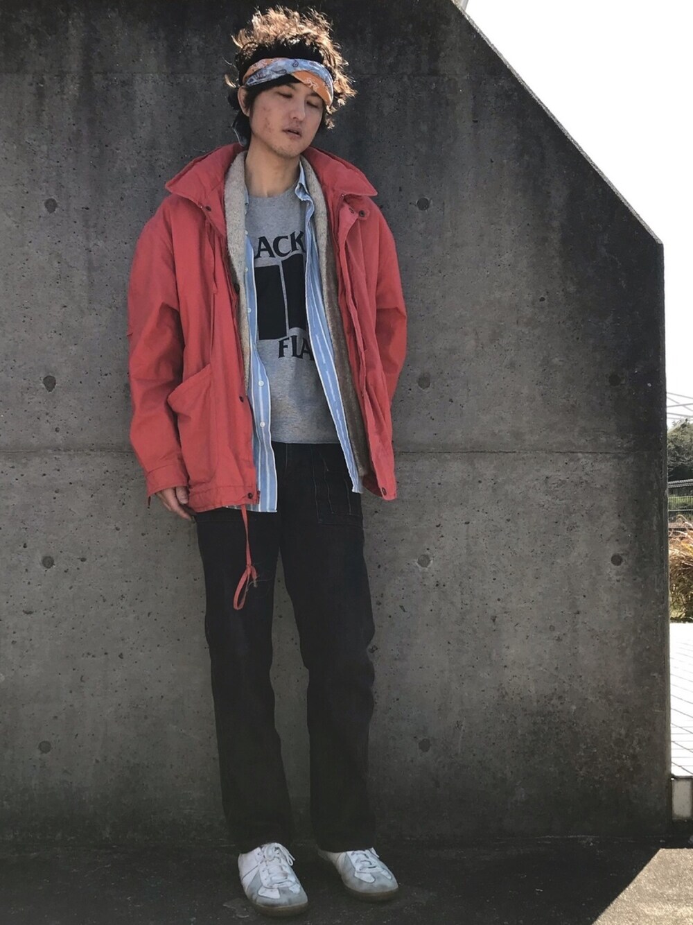 スプリングミクスチャー 春なので、色が鮮やかな物を着たい。むしろ年中着たい。アウトドアな雰囲気のアイテムでロック、レゲエな着こなし。注目はバンダナのレイヤード。ロールアップはするかしないか迷ったけど、しない方がラフで個人的には好き。