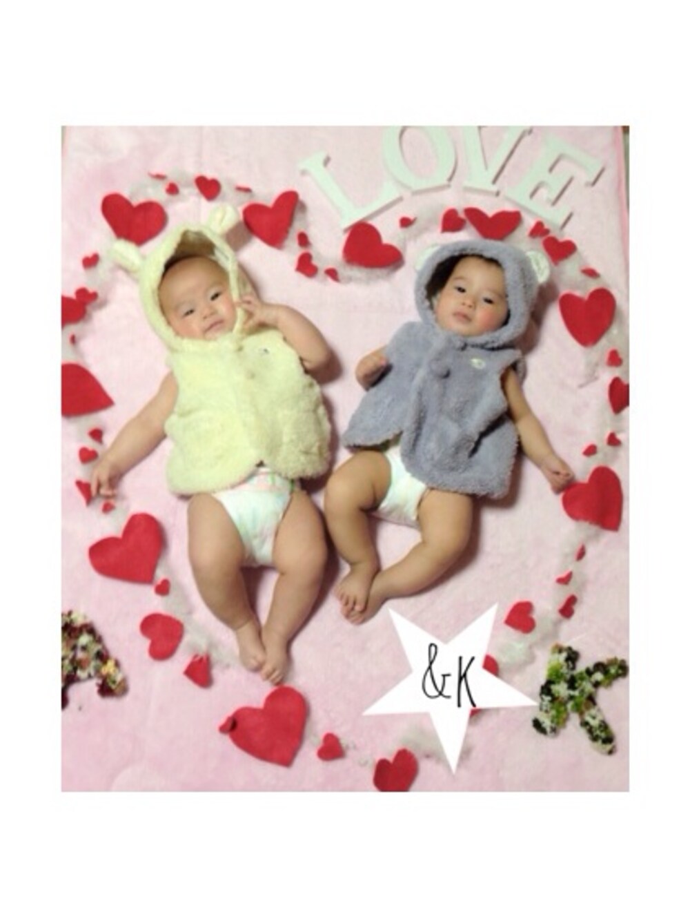 おそろcode♡⃛第3段 ってゆうてもほぼ裸☜ 来月はバレンタインがあるから そのイメージで、、、♥︎// 寝相アートならぬ寝起アート(笑) ひつじさんとくまさん\(ϋ)/\(ϋ)/ ふたりとものカメラ目線を いただくのはなかなか至難でした。涙