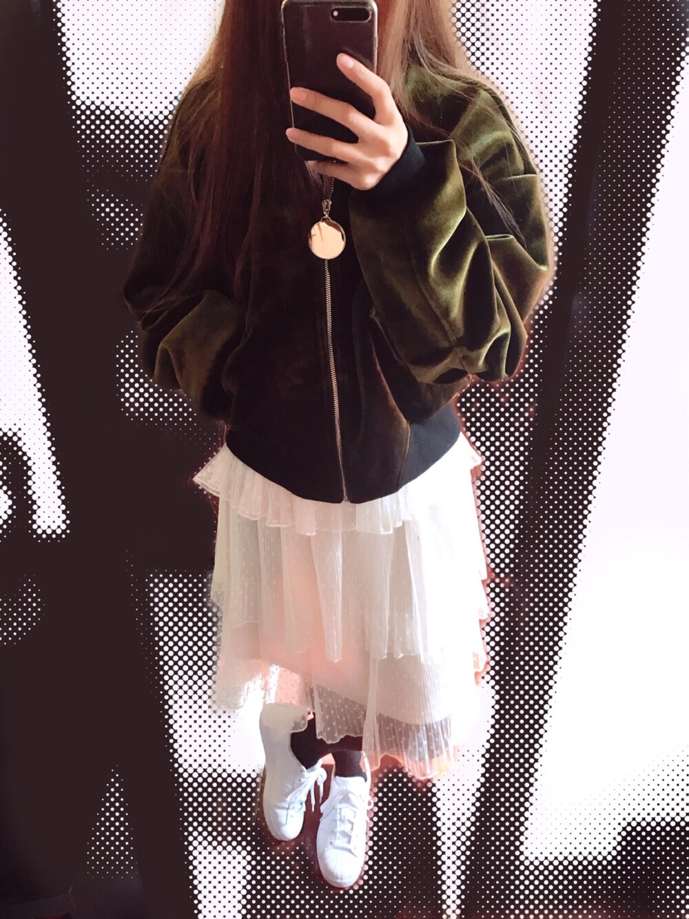 粒丸(´・_・`)のスニーカー「Adidas adidas White Superstar With Pearl Metal Toe Cap」を使ったコーディネート