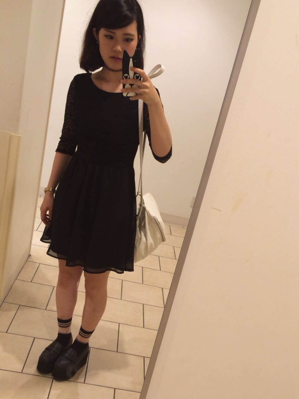 友達とご飯ー♡ ポイントはタトゥーチョーカー✡。:* このワンピースも袖がシースルーになってて可愛くってお気に入りー\( ・o・ )/♡ もっとおしゃれさんになれるように研究します\\\\٩( 'ω' )و ////