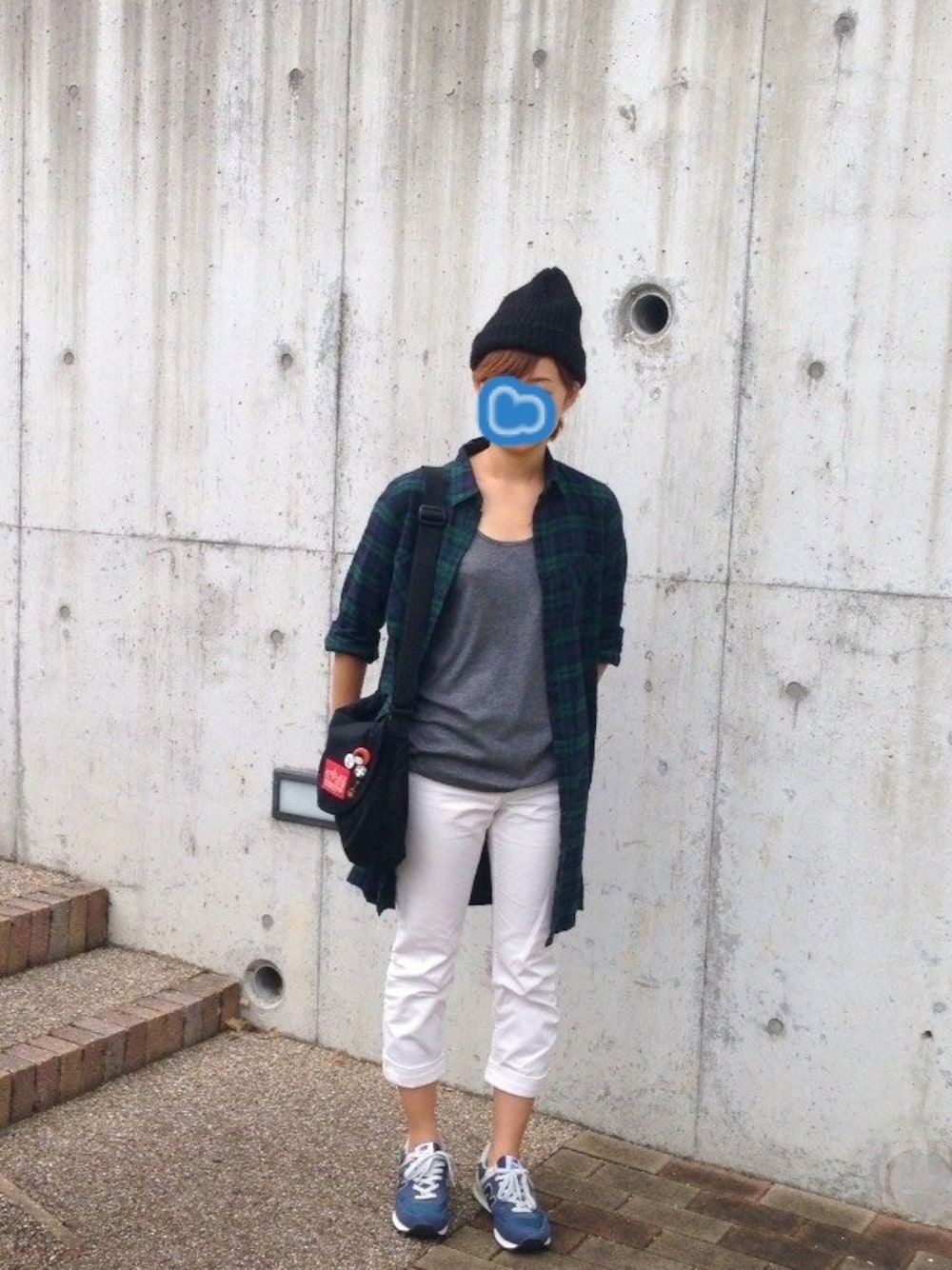 インナー:MELROSE パンツ:IENA SLOBE シューズ:NEW BALANCE ニット帽:SHIPS バックには大好きなYUKIちゃんとDragon Ashのバッチをじゃら付け( ^ω^ )