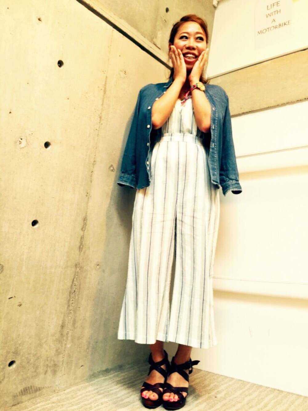 歯が痛いポーズ。 湿気が多いので涼しいオールインワン!! 暑いと楽チンなコーデばかりになります(´・_・`) 入荷したばかりのBADのオールインワン♡