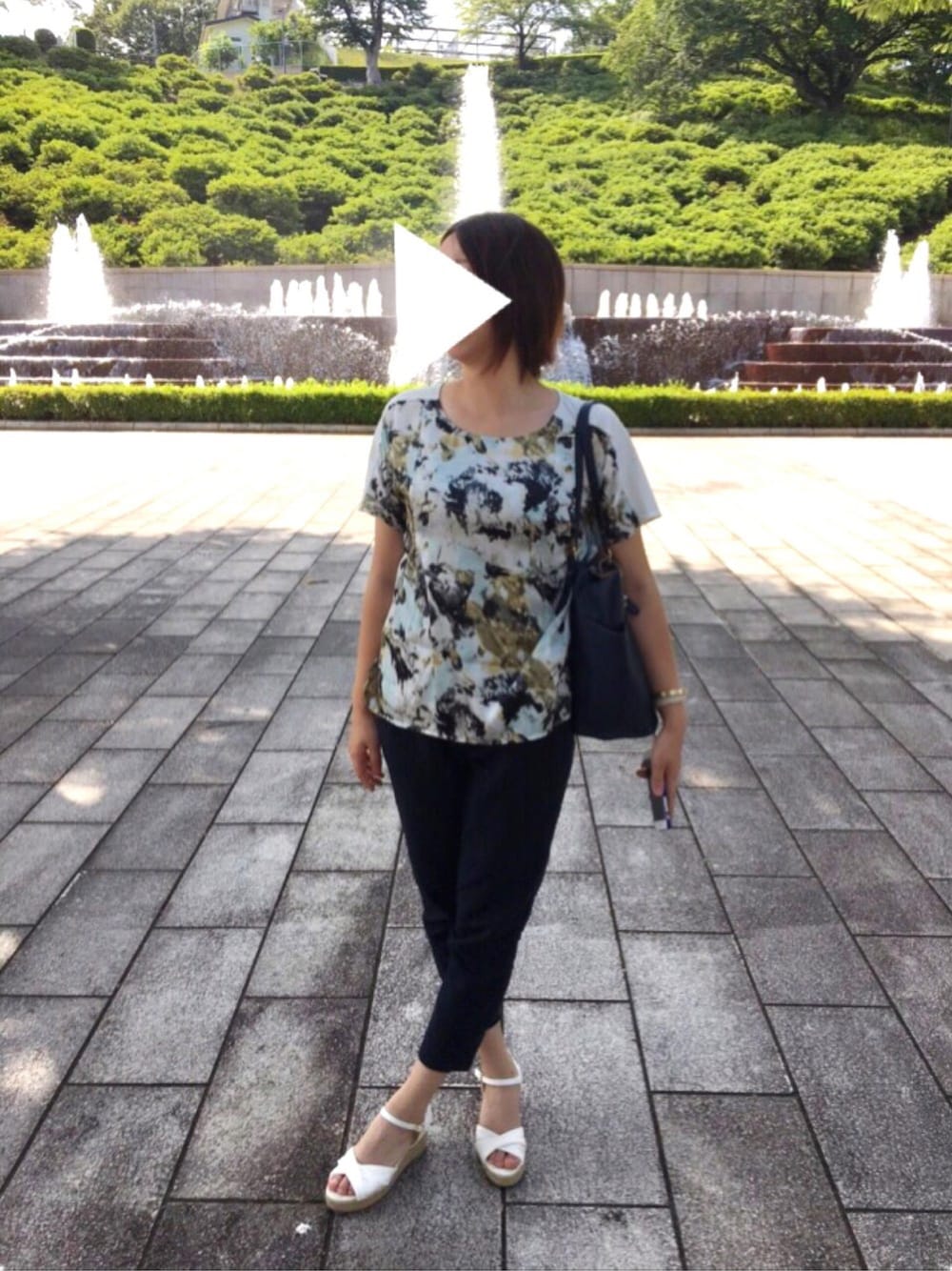 暑い中、公園で遊んできました。 噴水の前でモデルポーズして、と友人からリクエストされたのでパシャリ。 トップスはこの夏かなりヘビロテ中。 よれよれになるまで着ます笑
