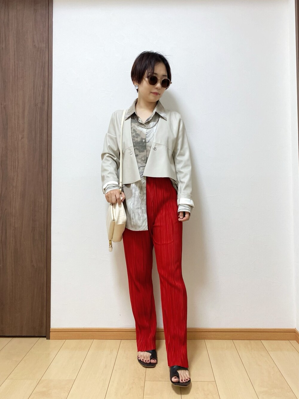本日はプリーツパンツ😙 はぁ…feepurのパンツほんと神…😇 私の中でペタンコな靴を履けるパンツって今まで殆ど無かったんですよ。 パンツを履く時は必ず厚底!という私の中のルールを無視させてくれる唯一のパンツです😙 今日はスモーキーなグレーと合わせてみました🔴⚪️⚫️