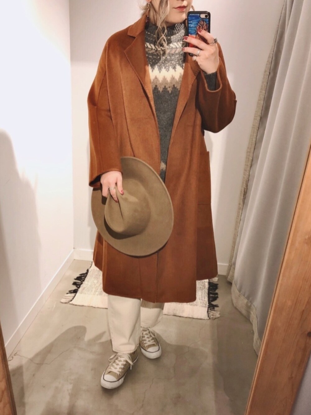 ご覧頂きありがとうございますっ!♡ 茅ヶ崎店インフルエンサーの ちかさんときよらちゃんがオススメしてた ハンドステッチウールチェスター♡ ステッチが全部ハンドメイド🤭💓 形がよくてとってもかわいい︎︎☺︎ インナーにはUSEDのニット♡ 1点物入荷で早い者勝ちです〜♡