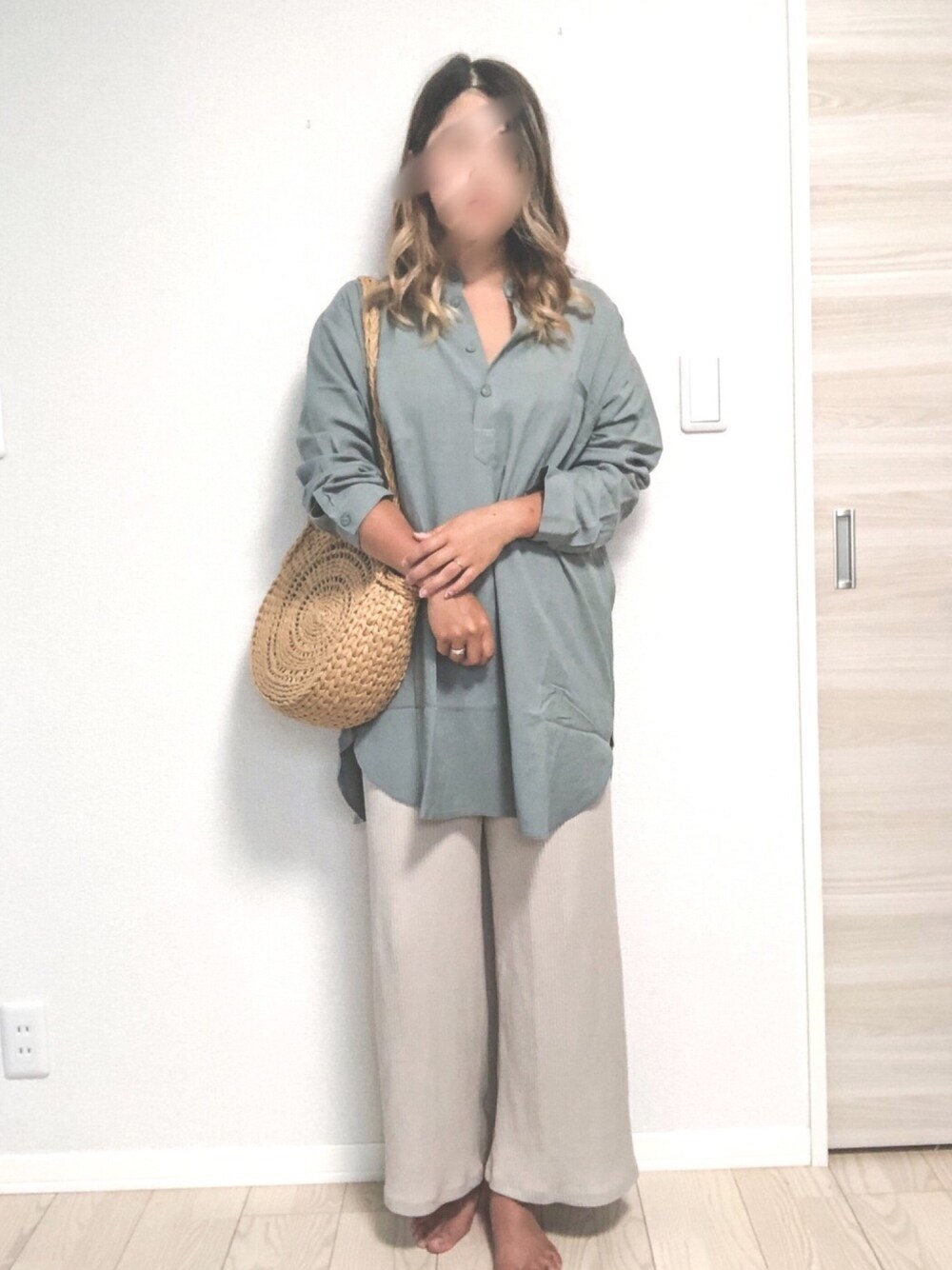 あちょ.のシャツ/ブラウス「【Holiday】バンドカラープルオーバー」を使ったコーディネート