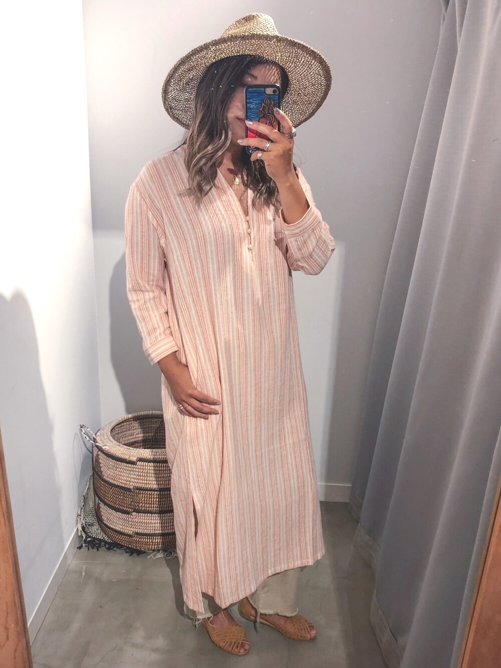 あちょ.のワンピース「【Holiday】ストライプガーゼカフタンドレス」を使ったコーディネート