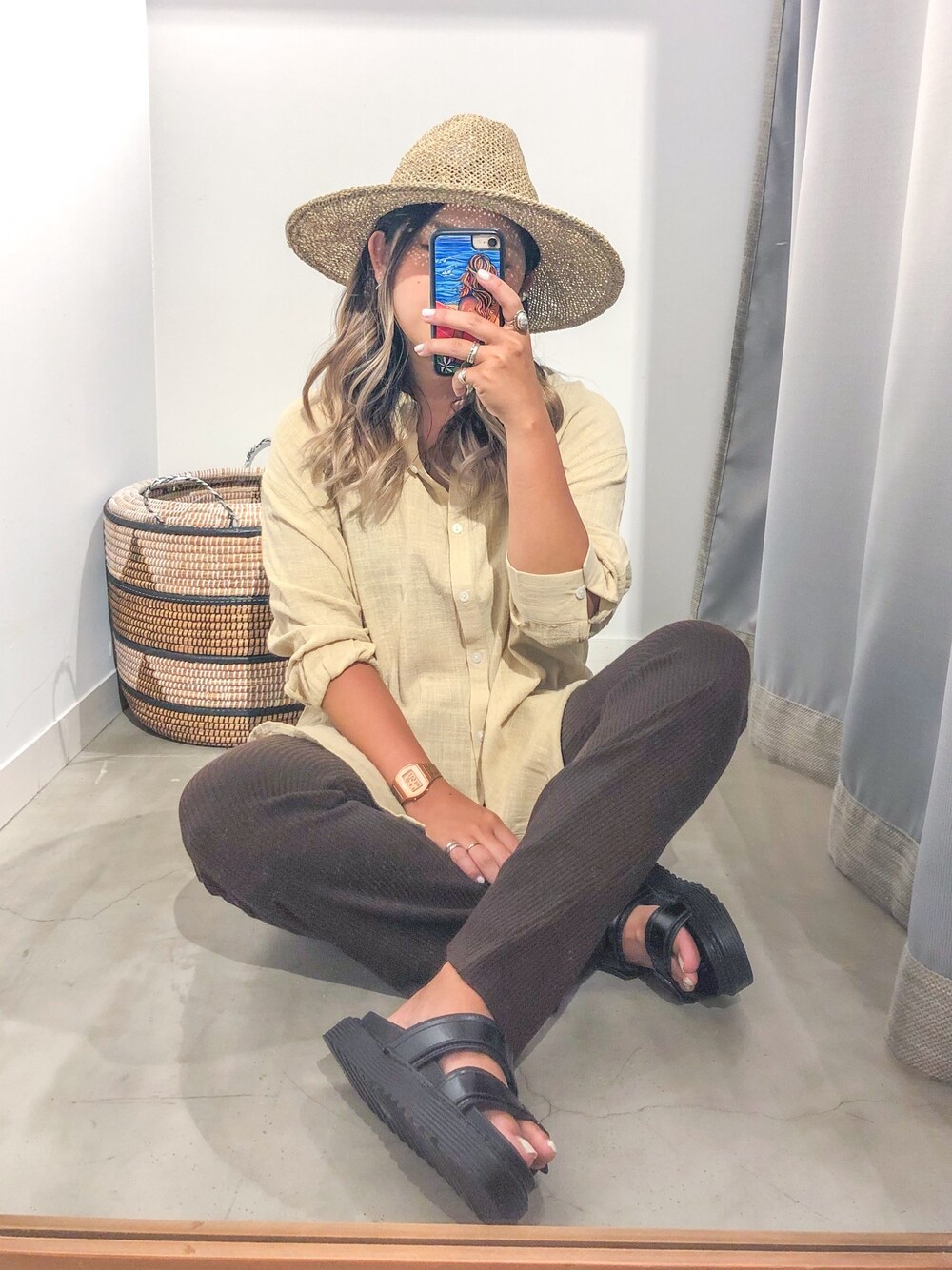 あちょ.のハット「シーグラスハット」を使ったコーディネート