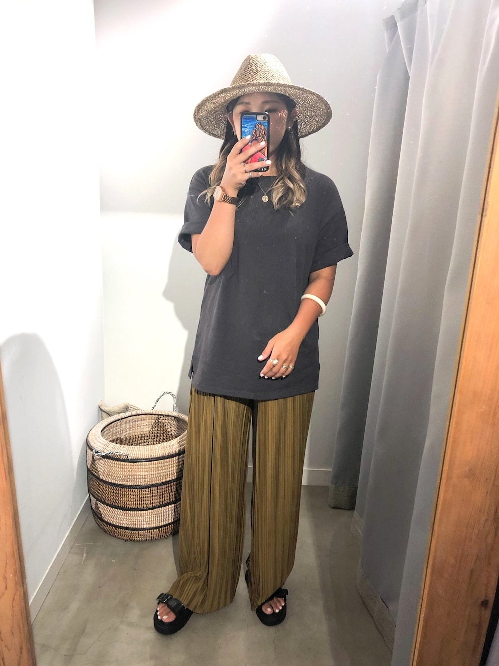 ご覧頂きありがとうございます!♡ 楽ちんコーデ🤭♡ オーバーサイズTシャツに プリーツパンツ合わせたかったんです🥺 かわいい🤭💓 最近のお気に入りコーデです😋🤙🏾 Tシャツは3色あるので めちゃめちゃ色悩みました👌🏽