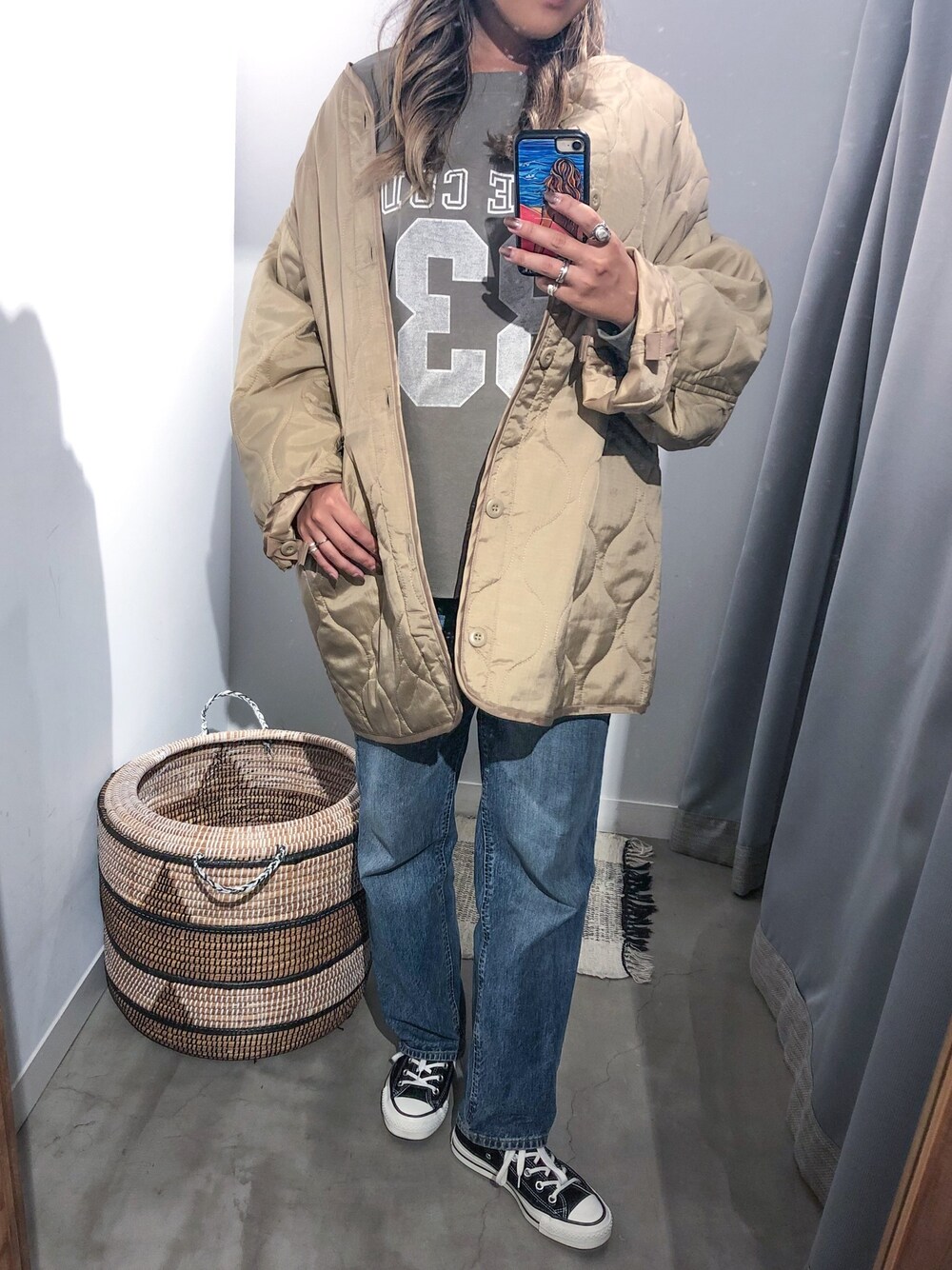 ご覧頂きありがとうございますっ! キルティングライナージャケットが 今の中途半端時期に活躍✨ まだ少し暖かなのでインナーには ビンテージライクなTシャツをin! 寒くなってきたら肉厚ニットや 袖ボリュームトップスも楽々 着られちゃいます🤭💓