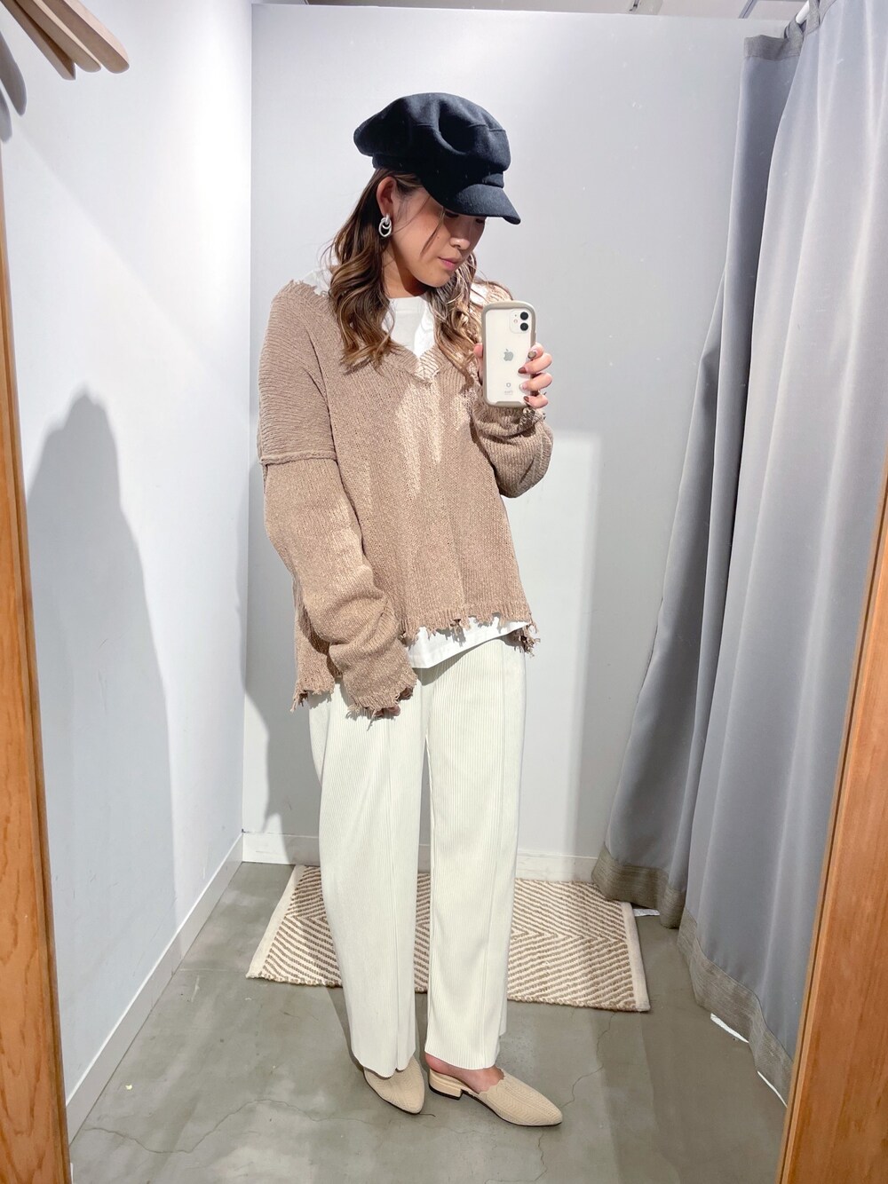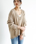 あちょ.のニット/セーター「コットンダメージVニット」を使ったコーディネート