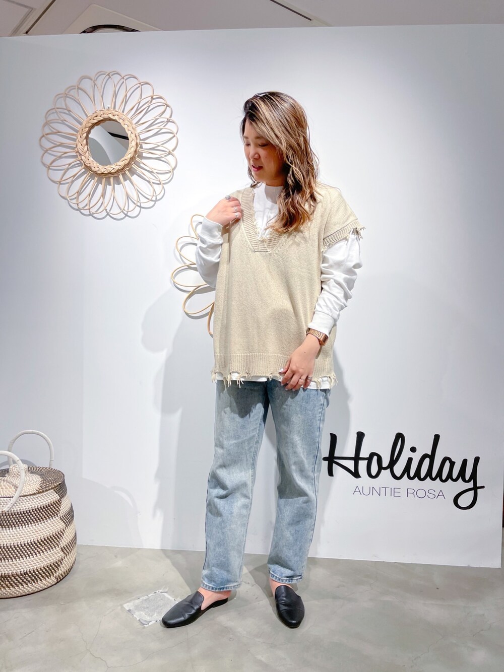ご覧いただきありがとうございます!♡ 今年トレンドのベスト🙏🏽 フリンジがポイントでかわいい⌣̈⃝ インナーの白TEEは重ね着にも 丁度いい丈感◎! 1枚で着た時もバックプリントが かわいいですよっっ🌼