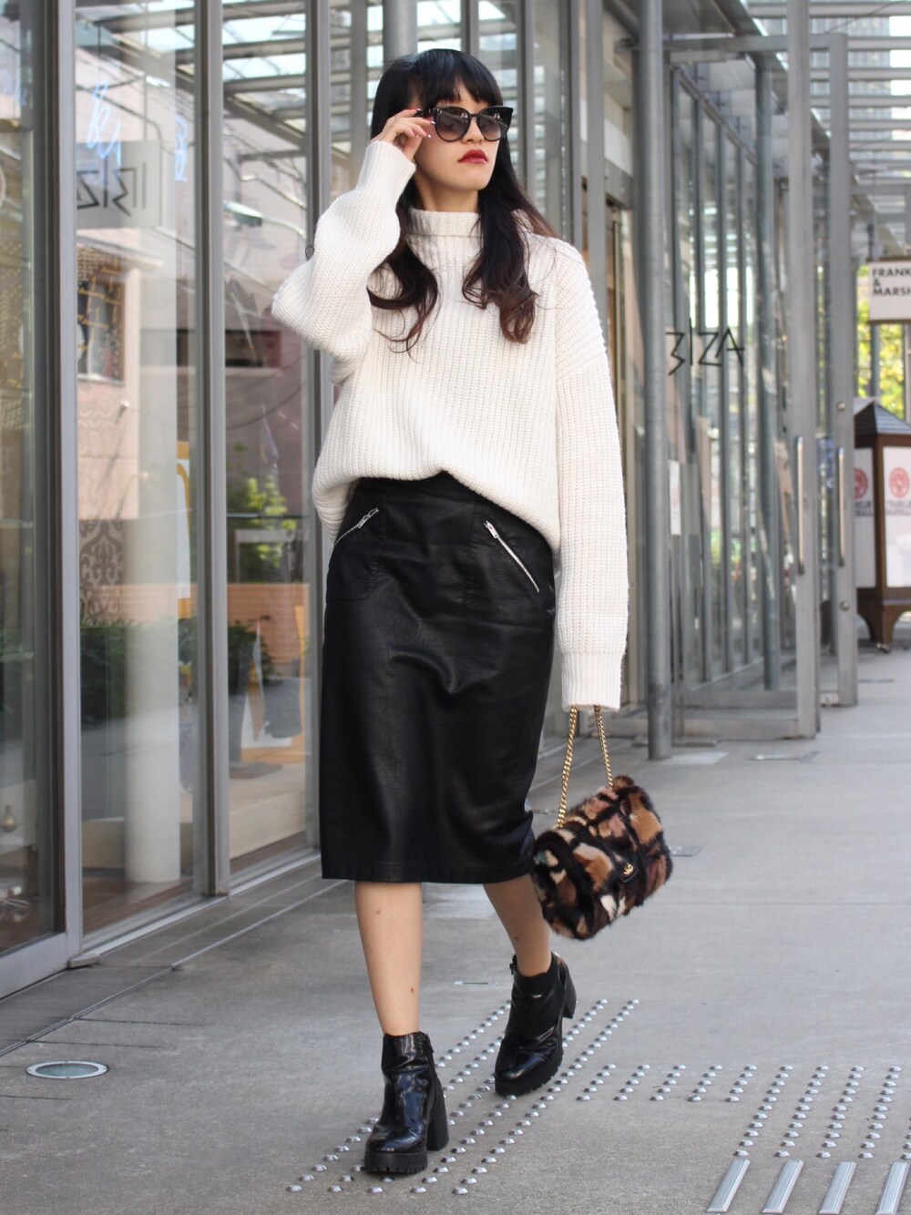 プチプラな女の子コーデ♫ レザースカートとセリーヌの キャットアイサングラスでバランス取るよ。 ミンクファーのvintage CHANEL。 かわいすぎる。。。💕 オンラインショップに掲載中! →qoo-online.com