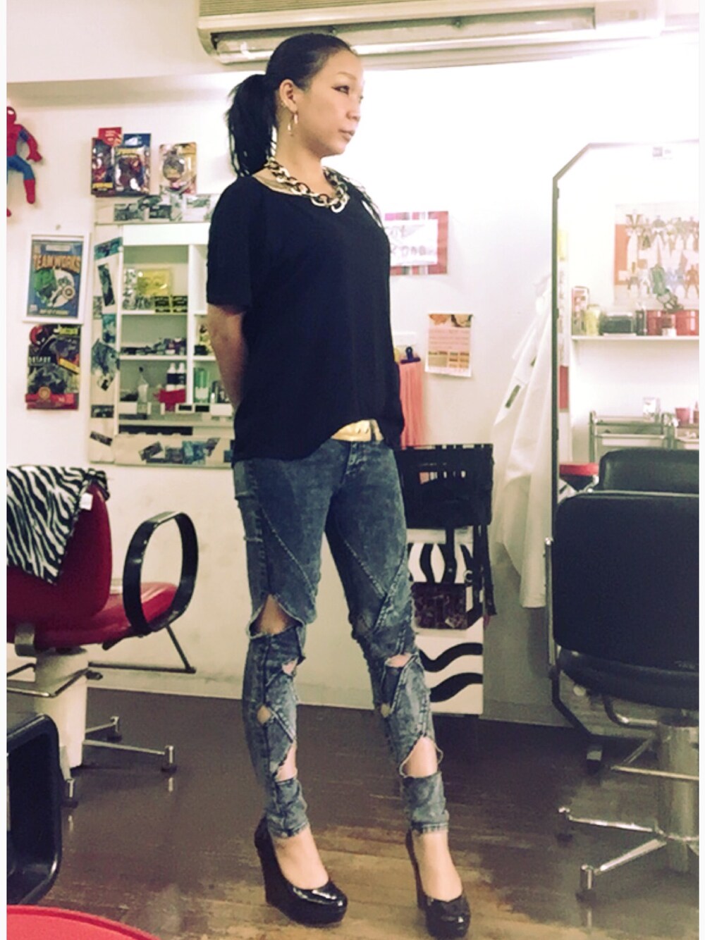 デニムとネックレスが ポィントです(๑•̀ㅂ•́)و✧ 前髪作りたぃー! けど…ここまで伸びたしなぁ…悩むなぁ笑