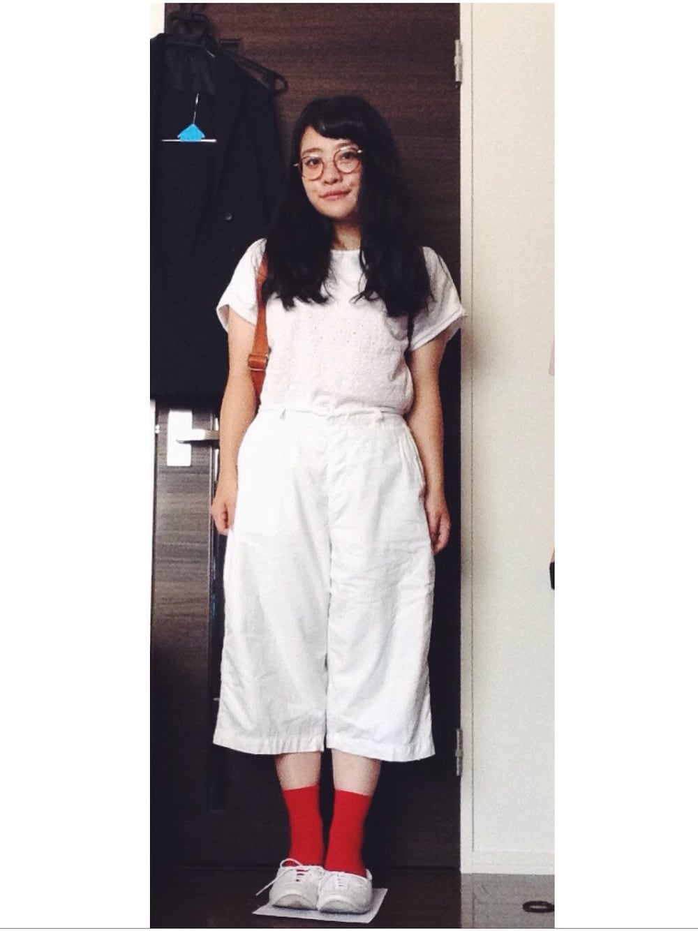 2015.08.01 ( sat ) はれ 心機一転WEARはじめました 。 今日は全身白に 差し色で赤をイン 🔴⚪️🔴 新しい手帳も買ってごきげんです ♩