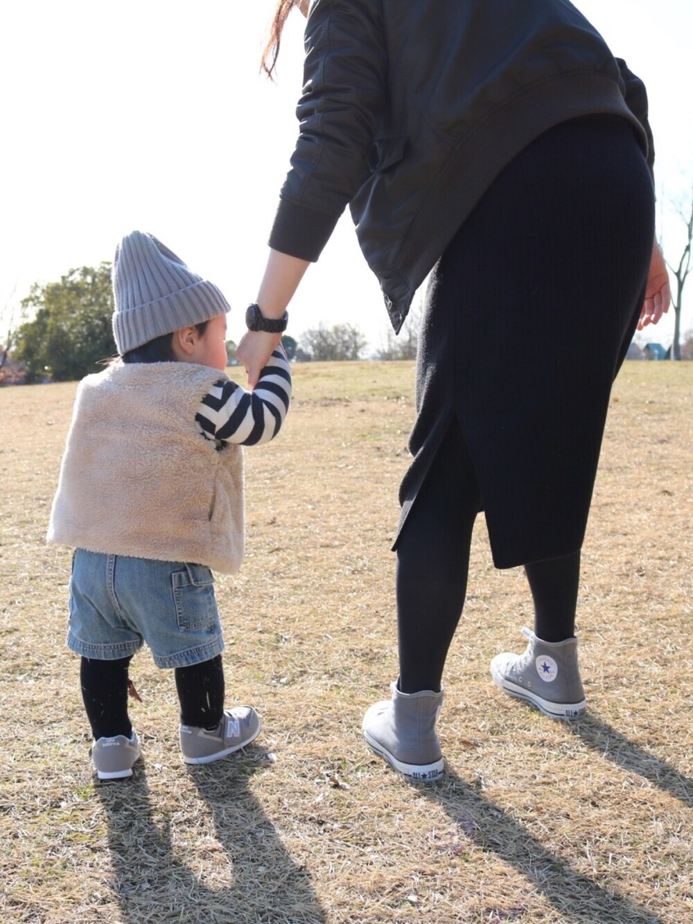 息子っち久々の登場👦🏻 室内で歩くのは上手になってきたのでお外での練習👣 今日はあったかくて公園日和🍂