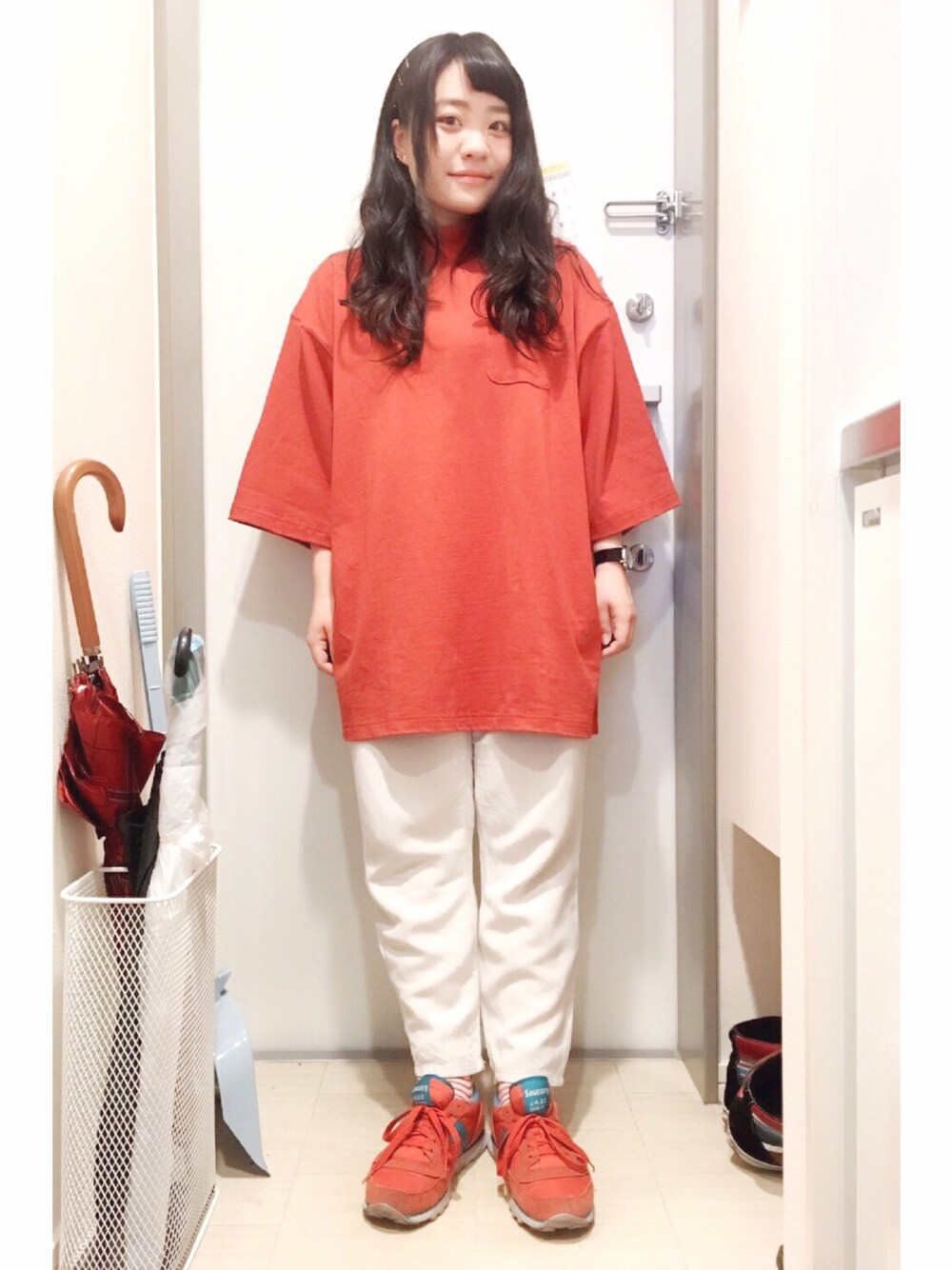 2016.05.03 w closetのビックTシャツに 白いボトムを 。 Tシャツ本当はもうすこしえんじです ◎
