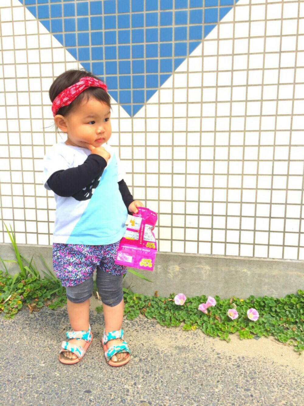 acoricoのサンダル「キッズ adidas アディダス akwah 9 i ベイビー アクワ インファント S74685 16SP GRN/WTH/SUNGLO」を使ったコーディネート