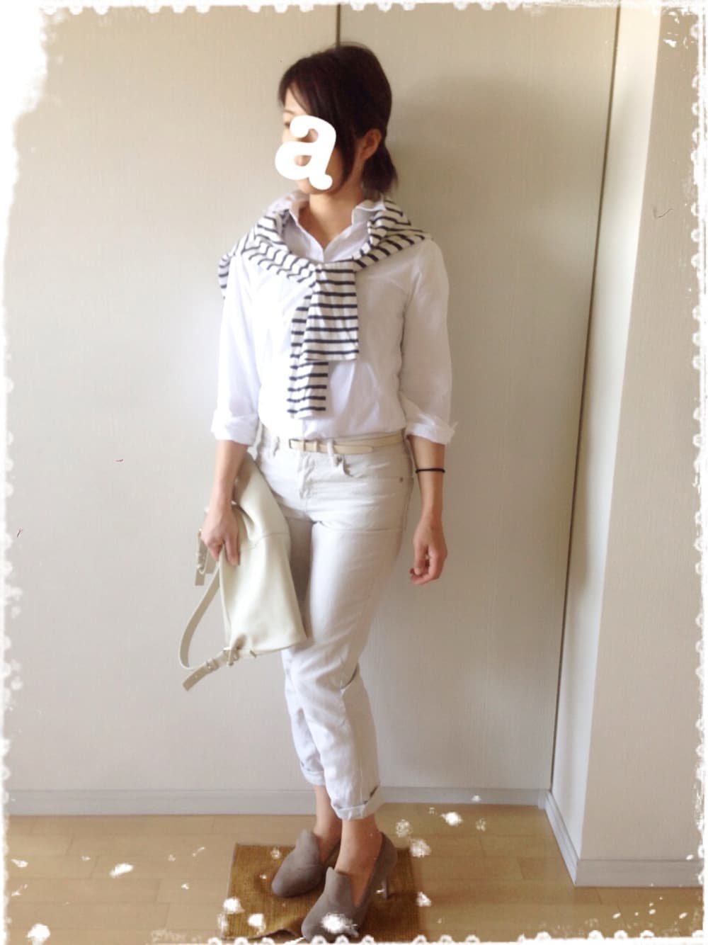 グレーと白で着てみました。 パンツ、UNIQLOリネン パンツもグレーっぽい、、