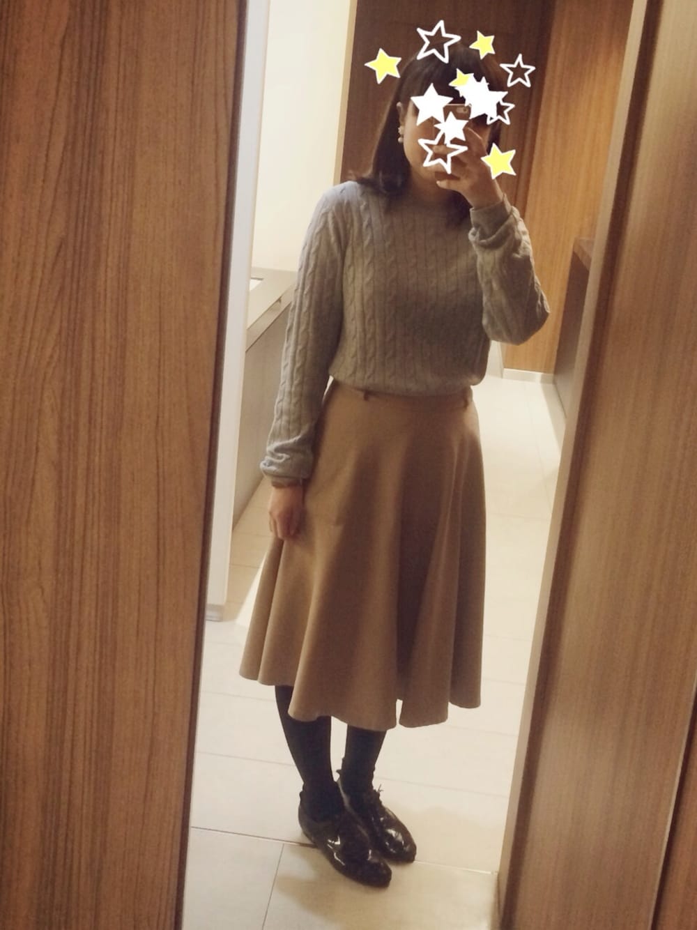 UNIQLOセーター、メンズのLしかなくてちょっと大きめです💦しつこいくらいにイヤリングと、靴下にパールついてます(^ν^)