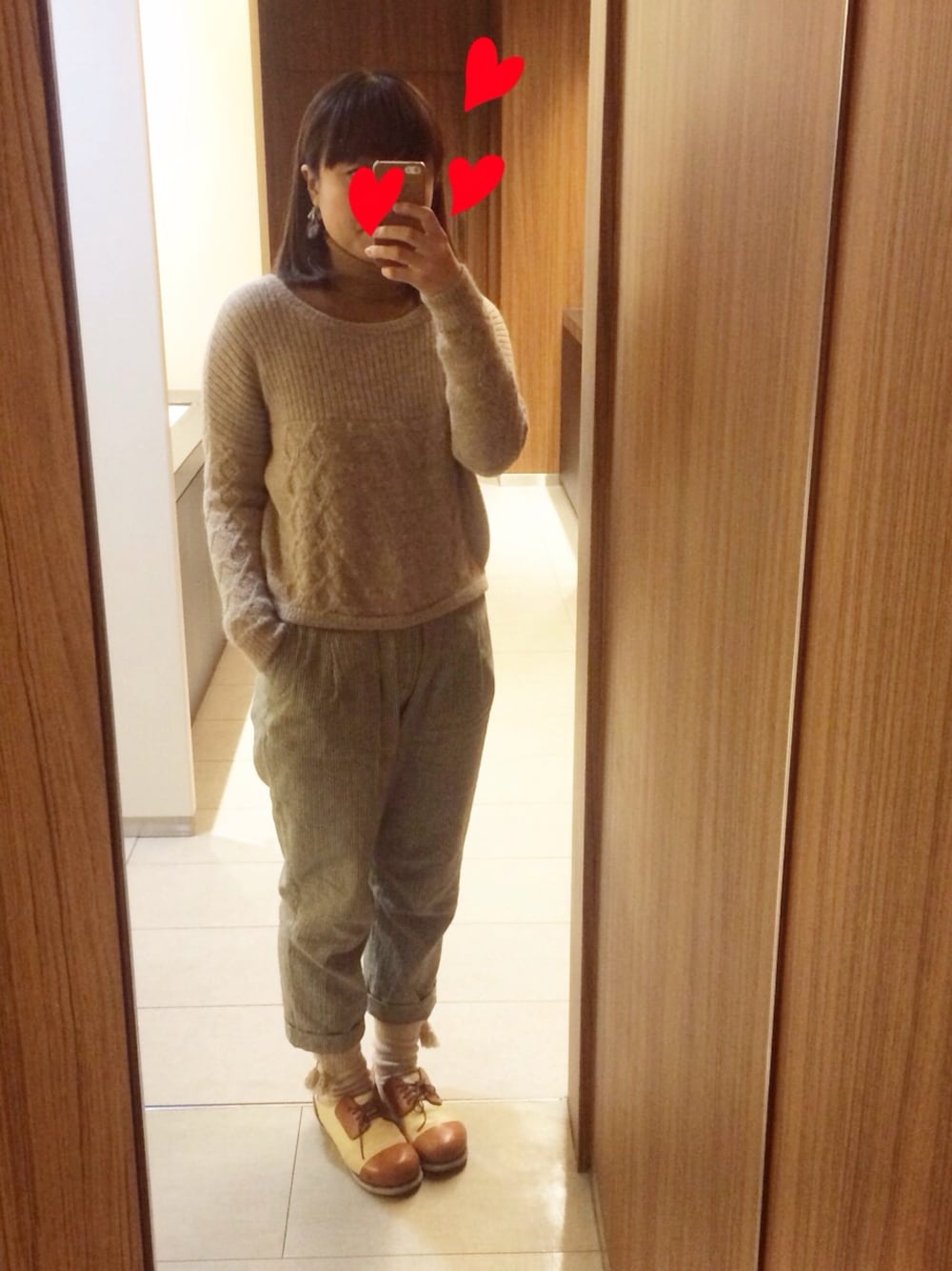 見えにくいですが、一応、ストライプです💦ストライプパンツ、薄めなのでタイツを... 靴下はタッセル付きで久々に履きました♡ 今日は、プレゼント探しに街へ...街は人が多いなぁ(・・;)