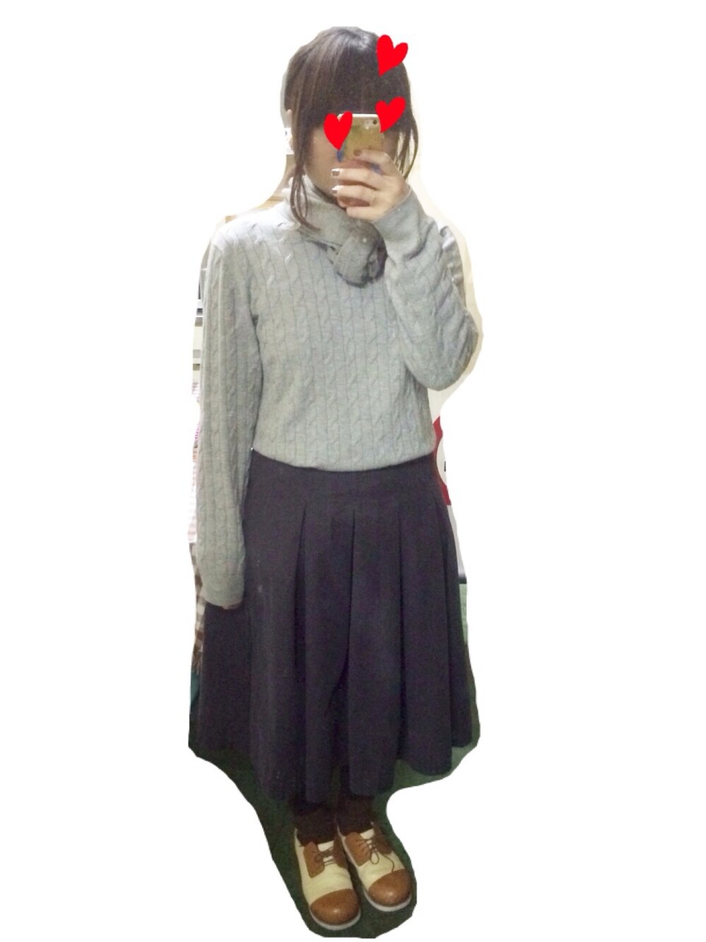 親のタンスにあったマフラーを借りて^_^ トップスはニットで、レッグウェアはヒートテックであったかく♡ほぼUNIQLO♡