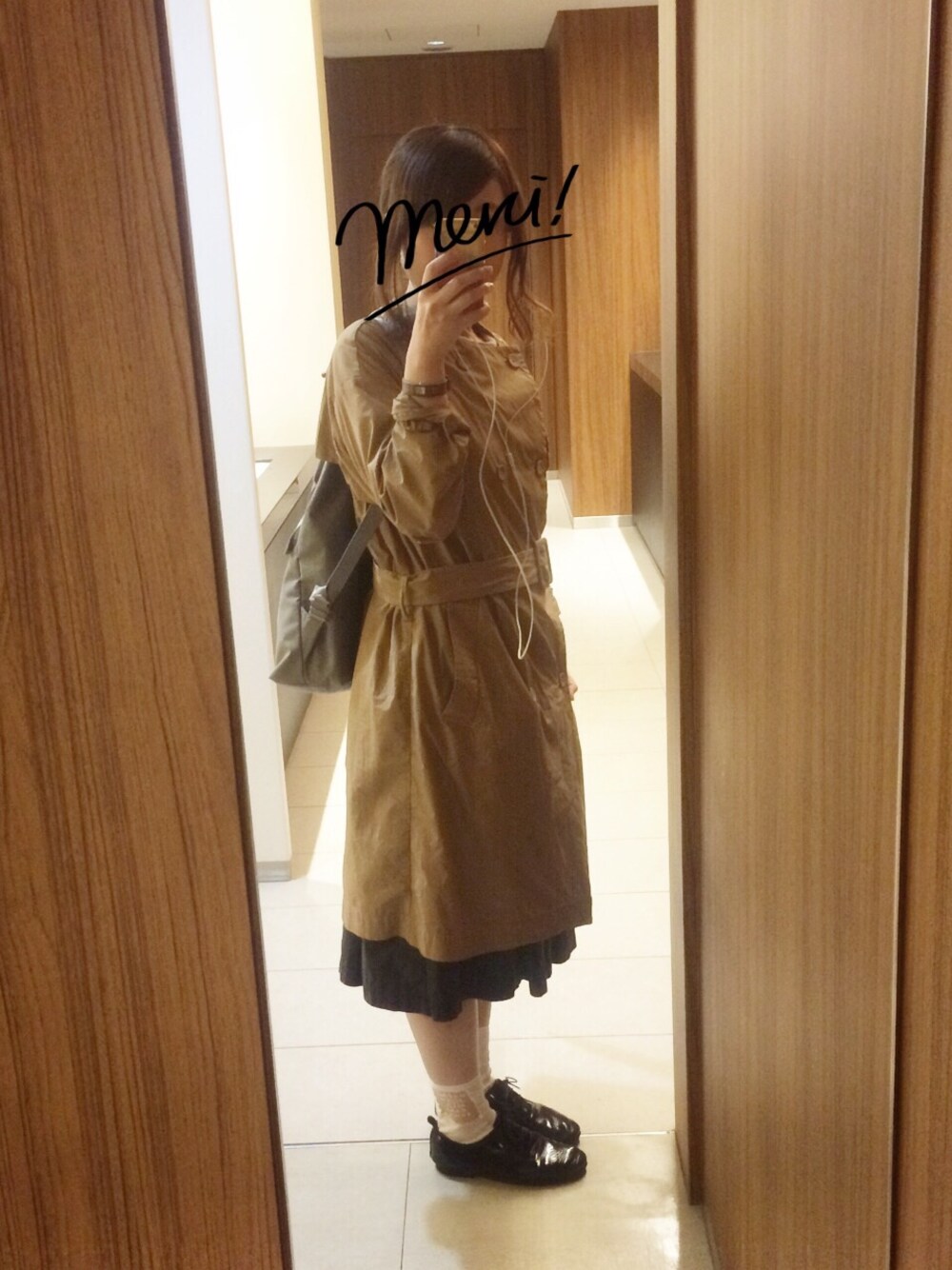 トレンチのベルトをしめてみました...(´◡͐`)裾もちょうどよくスカートがチラッと💫 靴下、横が透けて文字が書いてるので、横向きで撮ってみました📷❤︎