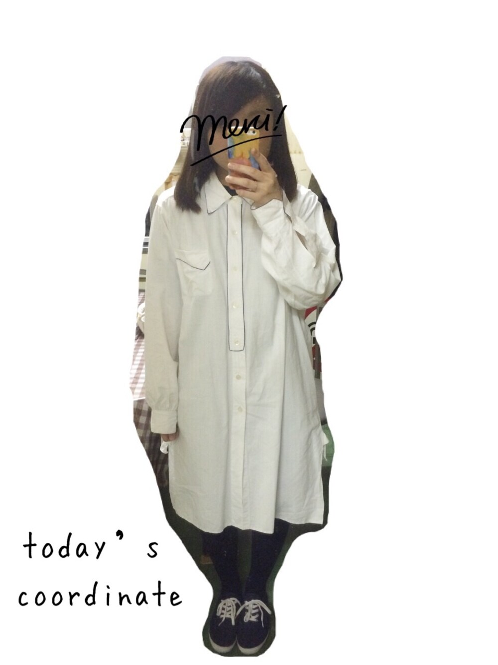 お医者さんみたいとか言われながら、でもお気に入りのシャツワンピなんです...(´つω・`) 前が長めの丈で、シルエットもディテールも🙆メンズのビンテージシャツみたいで、おっきめサイズ、パイピングの青にヒトメボレです💘