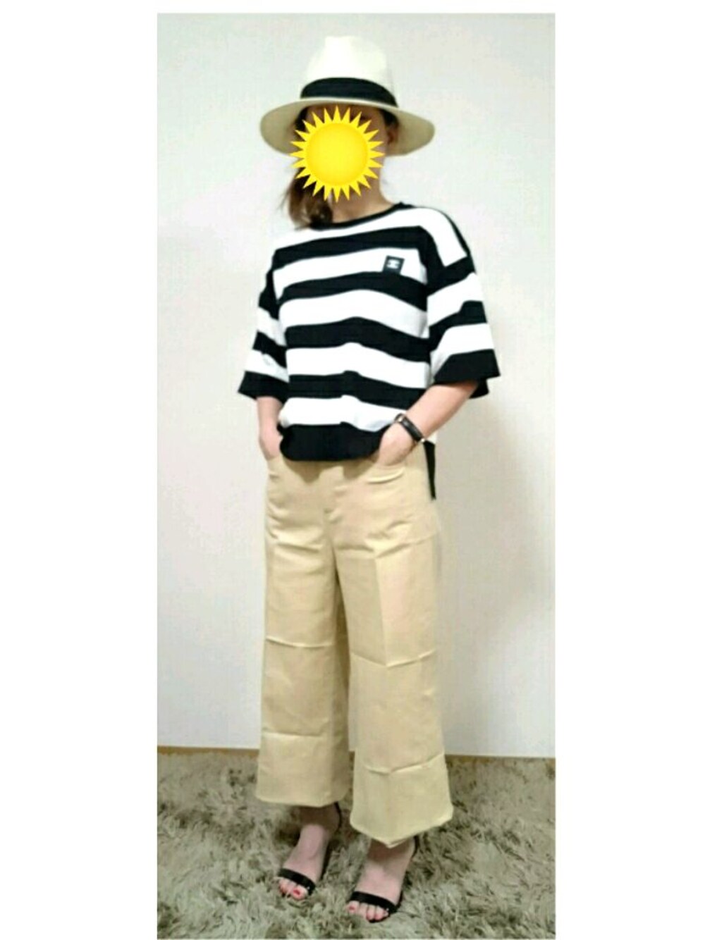 GUのチノパンにCHANELのトップスを合わせてみました。 足元をアンクルストラップサンダルにして大人っぽさをだしてみました。