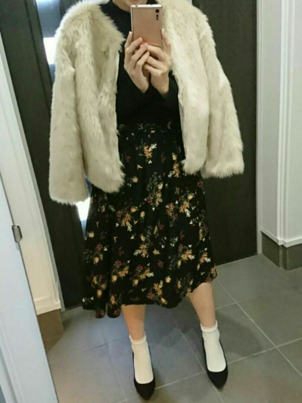 *aco*のその他アウター「ショートファージャケット」を使ったコーディネート