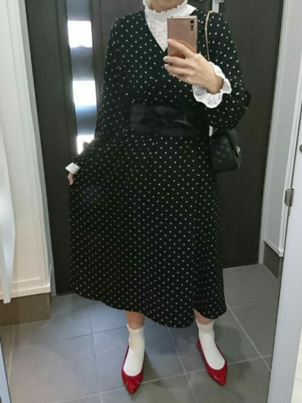 ご覧いただき ありがとうございます☺ ドットワンピースで親子リンクコーデ🍒 ママバージョンです👩 フリルトップスのレイヤードも同じです♥ いいね、おきにいり、フォローうれしいです🐰