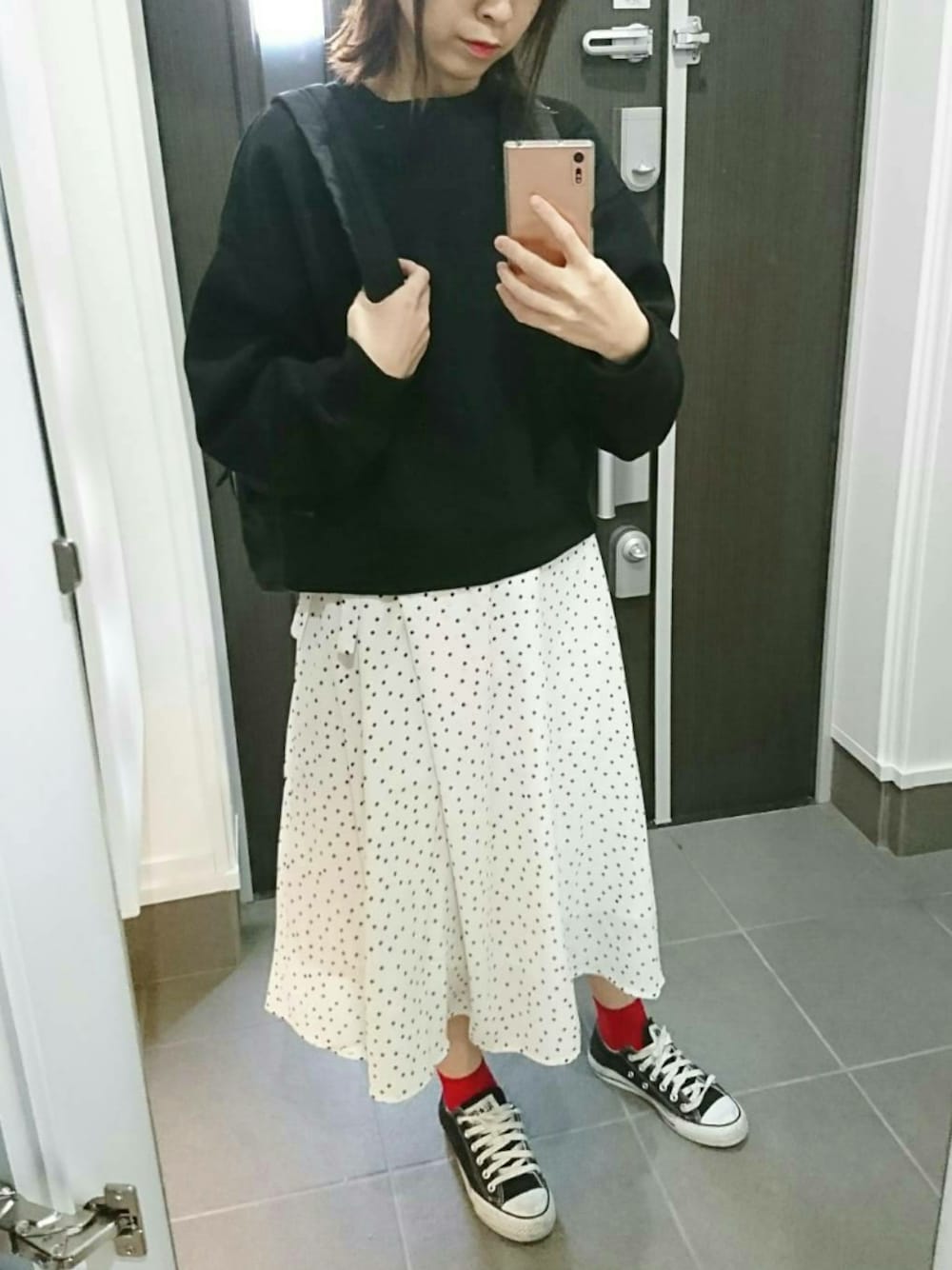 ご覧いただき ありがとうございます☺ スカートにキャップとバックパック合わせすきです♥ いいね、おきにいり、フォローうれしいです🐰