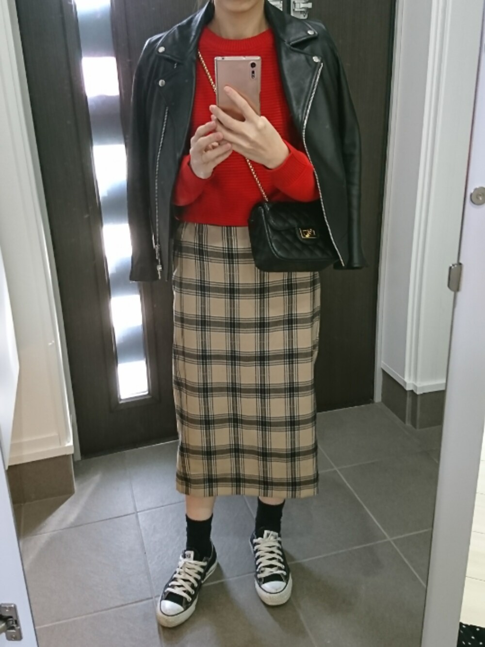 *aco*のライダースジャケット「シープレザーWライダース」を使ったコーディネート