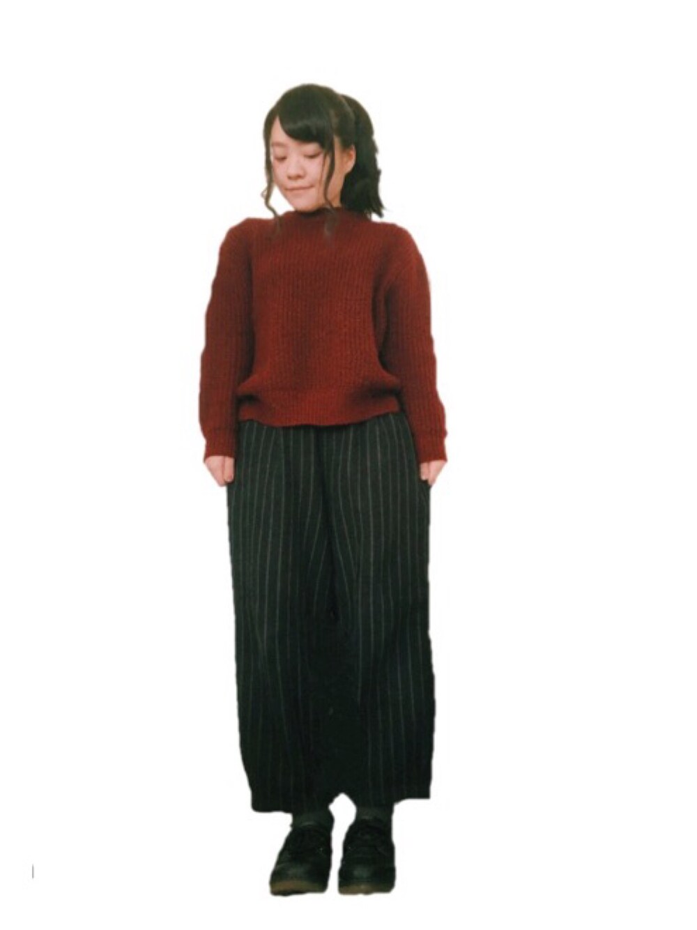 2016/01/02 えんじのニットにワイドパンツ 。 下がもっさりなのでポニーテールにしてみた ◎
