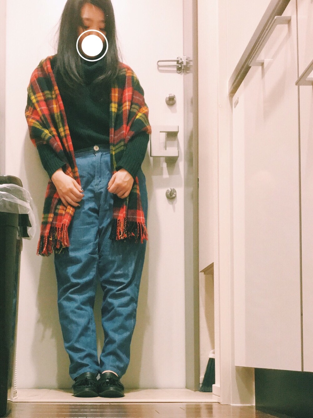 2016/01/24 毎日のように 今年一の寒さ って報道されている気が ‥ △ 今日はシンプルに ニット + デニム に 寒かったのでストールを ◎◎