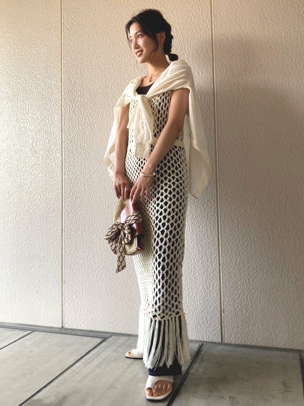 マクラメ編みのキャミワンピ⭐︎ タンクトップ、シアーシャツと合わせて 夏っぽく🎐🍉
