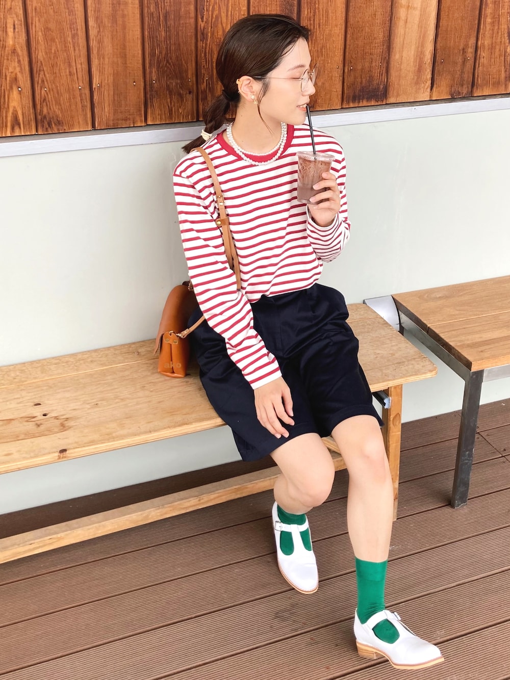 🫑🍅 反対色コーデ☺︎ ボーダーとパールの組み合わせスキ♡