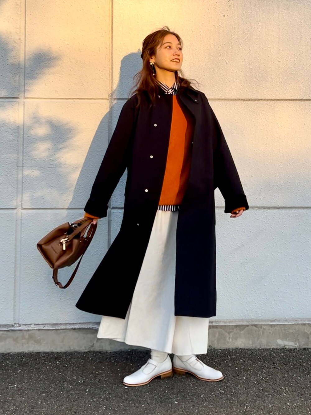 襟元と袖口がコーデュロイになってて可愛い Mackintosh philosophy graylabelのコート🤍💙 襟立てて着てもがらっと雰囲気が変わって お気に入り🧥 今日はマーメイドスカートと合わせてちょっとだけレディにまとめてみました🕊