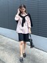 リラックスシルエットのシャツにハーフパンツ🍋 襟元をあけてラフに🍃 シャツ以外は黒で統一して大人っぽくまとめました🥸